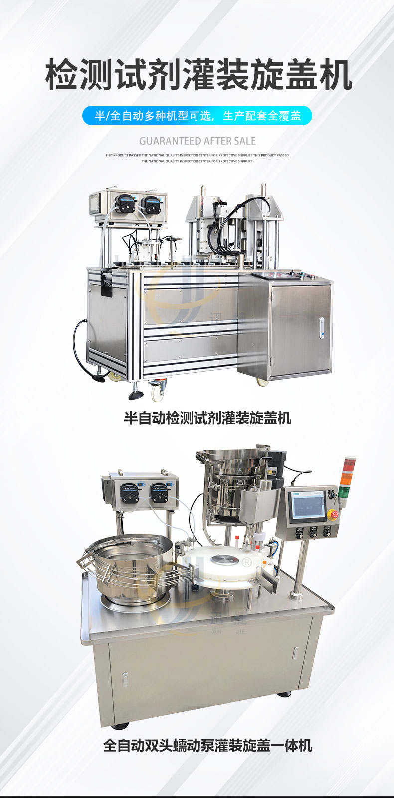 診斷試劑灌裝旋蓋機(jī)適用于診斷試劑、液體采樣管等管狀容器。本機(jī)可選配防塵罩搭配層流罩(FFU)結(jié)構(gòu),可達(dá)到局部百級環(huán)境下完成灌裝及封蓋。