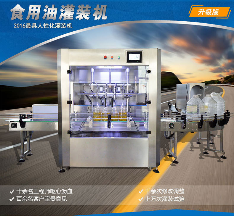 產(chǎn)品簡介:全自動玉米油灌裝機是全自動油類灌裝設(shè)備中比較特殊的一種,是根據(jù)玉米油的的特殊品質(zhì)而量身打造的專門用來灌裝玉米油類產(chǎn)品的全自動灌裝機械。該設(shè)備采用先進的定量灌裝技術(shù),將微電子智能控制技術(shù)與程序控制應(yīng)用于本灌裝機,使之成為機電一體化的新型產(chǎn)品。