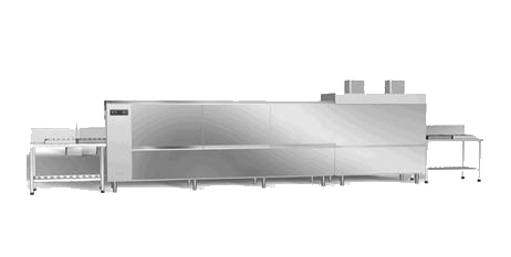 5、由減速機通過一對鏈輪運動,人工將碗碟插入輸送帶,碗碟先進入循環(huán)溫洗滌水區(qū),由上下兩排噴嘴洗滌水進行沖洗 ,接著進入熱水循環(huán)沖洗區(qū),由上下兩排噴嘴洗滌水進行沖洗,后,進入高溫沖洗的漂洗區(qū)進行沖洗,洗凈的碗碟由人工從輸送帶上取出。